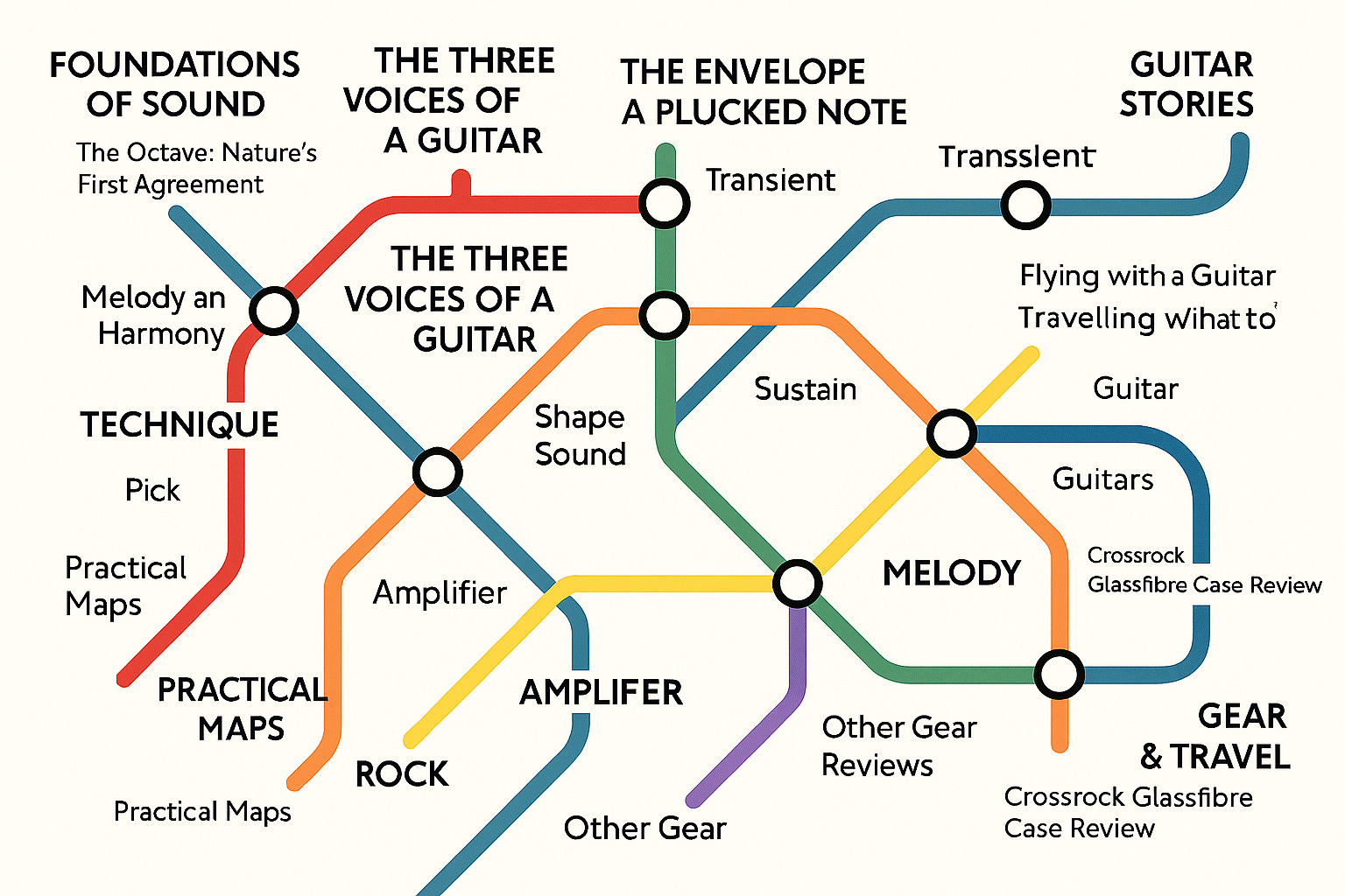 This is a slow‑growing map of the ideas I’ll be exploring over the next while; from the fundamentals of sound, to how guitars develop their voices, to the way I visualise my own instruments as a constellation. Think of it as a guide to where we’re heading on @myguitar, one small idea at a time.