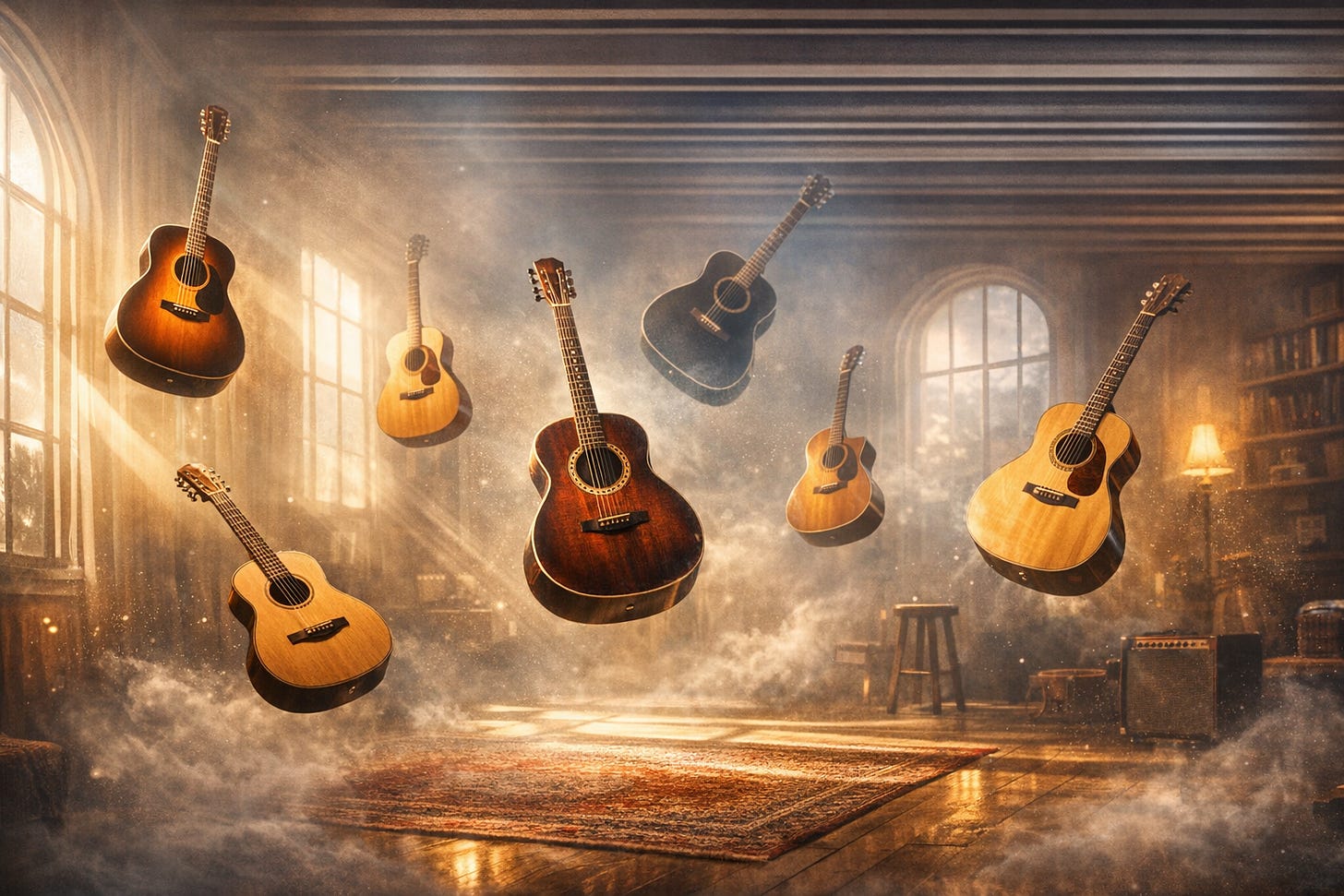 Once the room existed in my mind, I could finally walk around inside it. Each guitar I owned had taken up its own place - not by category or price or tonewood, but by behaviour. Some stood close, some further back; some rose high in the space, others settled low; some leaned toward the strong‑willed side, others toward the gentle. It was the first time I’d ever been able to see their personalities instead of just feeling them. And once I could see them, I could begin to understand why each one belonged.
